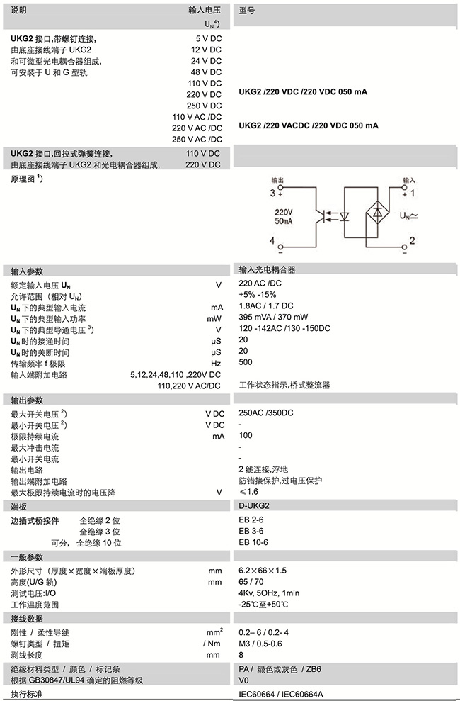 UKG2系列 带光电耦合器-UKG2/220.../220VDC 050MA