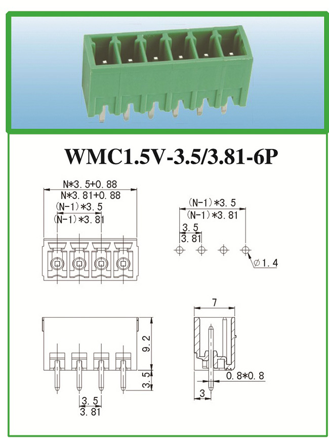 WMC1.5V-3.5/3.81-6P PCB线路板接线端子