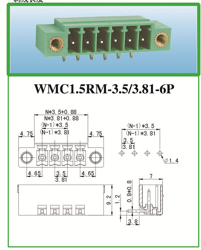 WMC1.5RM-3.5/3.81-6P PCB线路板接线端子